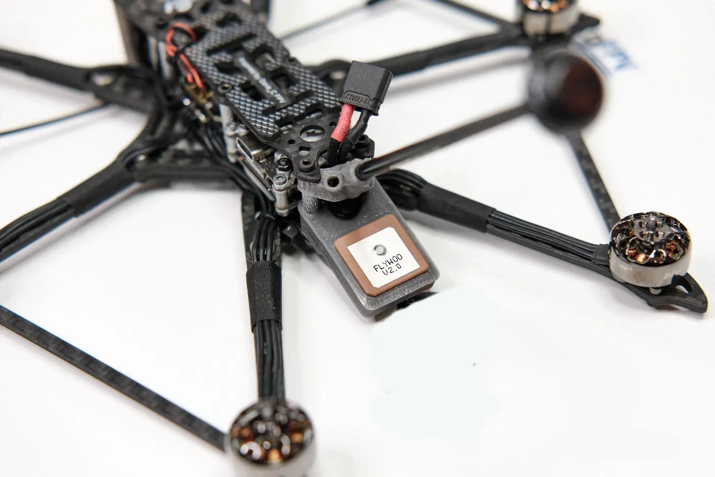 Избегайте электромагнитного излучения от других электрических компонентов вашего дрона. Наиболее распространенными источниками радиочастотных помех, мешающих работе GPS-модуля, являются HD-камера и видеопередатчик. Установите ваш GPS-модуль как можно дальше от этих устройств.