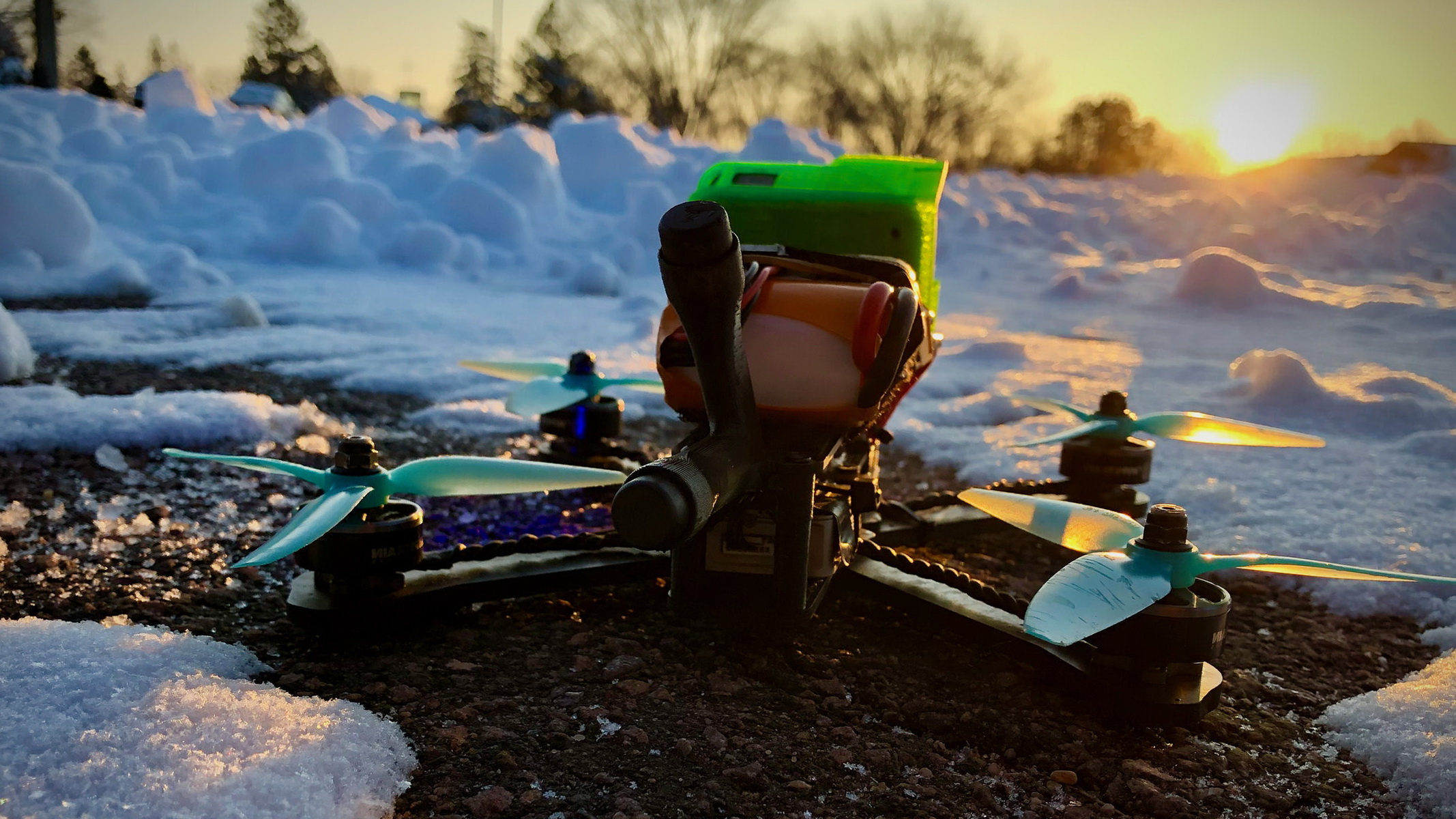 Единственный способ оставаться в тепле во время FPV-полета зимой – это управлять дроном, находясь внутри автомобиля и включив при этом обогреватель.