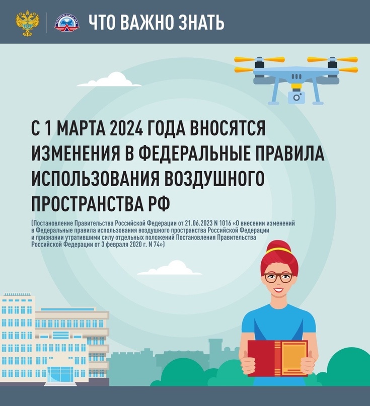 С 1 марта 2024 года вносятся изменения в Федеральные Правила использования воздушного пространства РФ, упрощающие процедуры организации полетов для гражданских БВС: