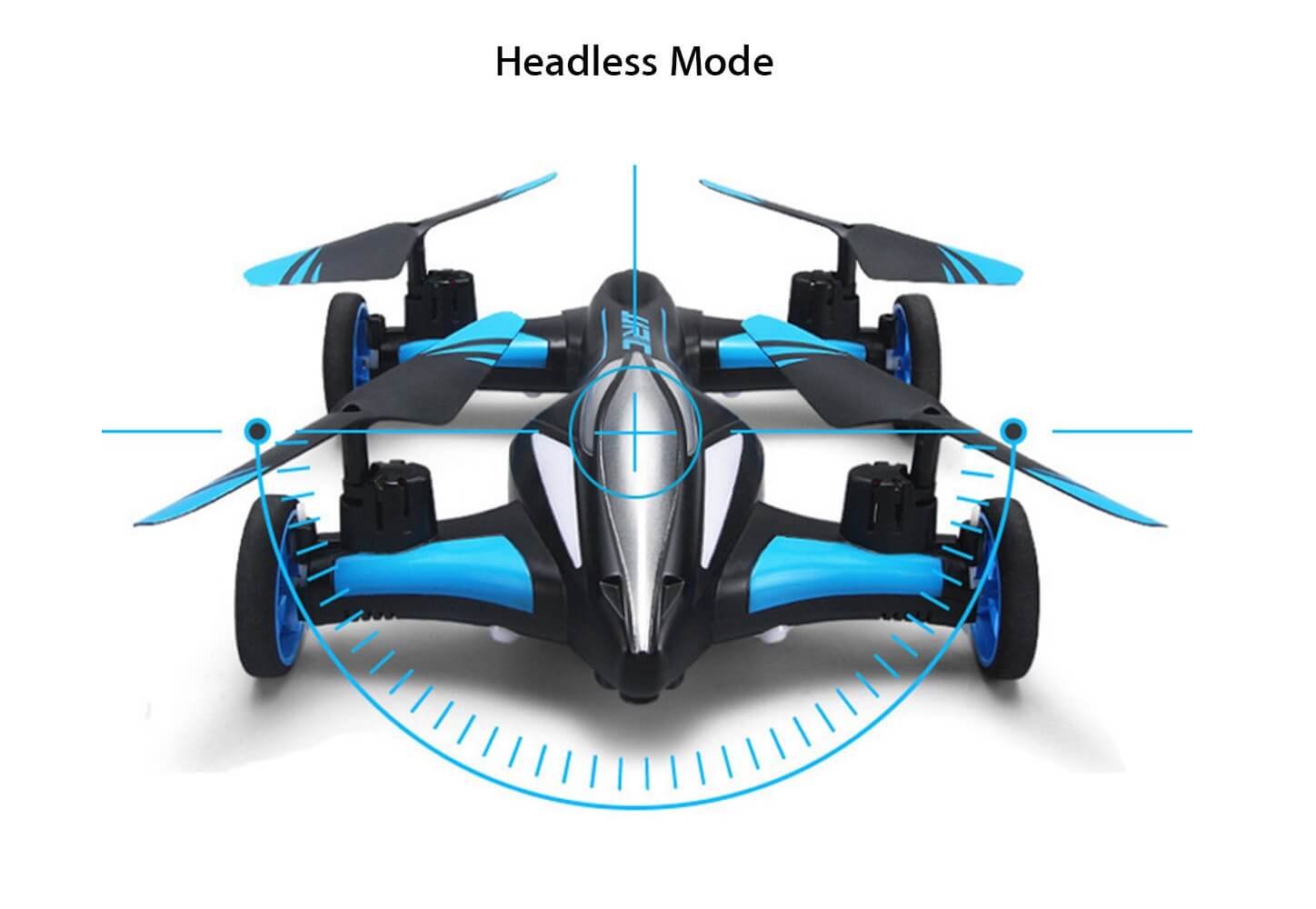 После включения Headless mode, квадрокоптер ориентируется исключительно на сигнал от пульта и не важно какое положение в пространстве он занимает. Если вы потянете рычаг управления на себя, тогда аппарат всегда будет лететь в вашу сторону. Нажмёте клавишу вправо, и он полетит вправо даже если он повернут в эту сторону задом.