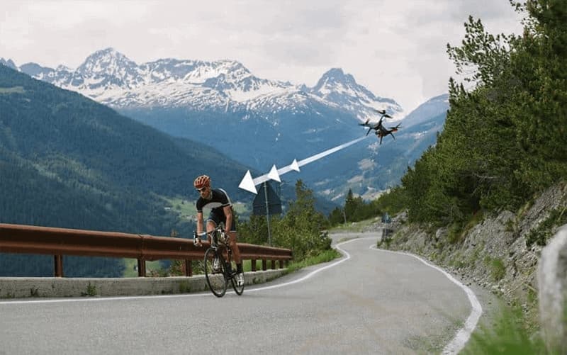 Сейчас мы всё чаще можем наблюдать, как спортсмены, велосипедисты и альпинисты используют БПЛА с функцией «Следуй за мной» и GPS для съёмки с разных ракурсов с целью дальнейшего просмотра результата и улучшения своей техники.